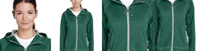 Shell: 7.08 oz/yd2 / 240 gsm, 100% polyester mélange fleece with moisture wicking performance; Lining: 100% polyester tricot in hood; Center front reverse coil zipper with semi-autolock slider and rubber pull; Attached adjustable hood; Lower pockets with reverse coil zippers; Shockcord at hood; Multi-color decorative tape detailing; Contrast coverstitch details throughout;