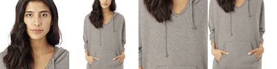 50% cotton, 50% polyester vintage sport French Terry; Tonal drawstring hood; Dolman sleeves; Kangaroo pocket; High-low hem;